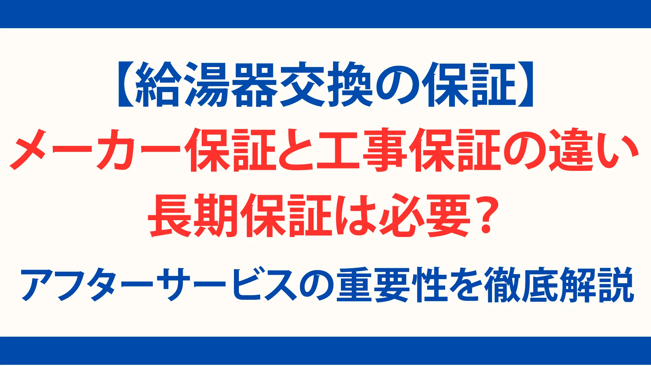 給湯器交換における保証は、大きく分けて「メーカー保証」と「工事保証」の2つがあります。この違いを理解することが第一歩です。